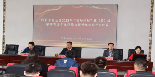 为进一步提高内蒙古自治区旗(县)级小学体育教师的专业水平,树立正确的教育思想观念,完善教育教学基本理论知识与技能,由我校承办的“国培计划(2023)”—内蒙古自治区旗(县)级小学体育骨干教师培训于10月15日上午在体育学院二楼多媒体会议室正式开班。继续教育学院党总支副书记、副院长刘云剑,体育学院党委书记韩武,体育学院副院长、项目负责人兼首席专家李凤新,培训班班主任及97名参训教师参加开班仪式。